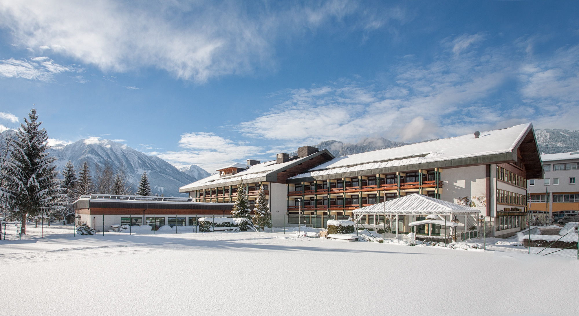 All’interno del nostro Resort c’è un centro benessere, dotato di sauna, jacuzzi, piscina all’aperto per le giornate di sole e quant’altro di cui avete bisogno per passare del tempo in completo relax. Offriamo corsi di golf, ad 8km dal resort si trova il campo di Goldegg. Fra i vari sport a vostra disposizione, potete trovare anche aerobica, climbing e gite in mountain bike.